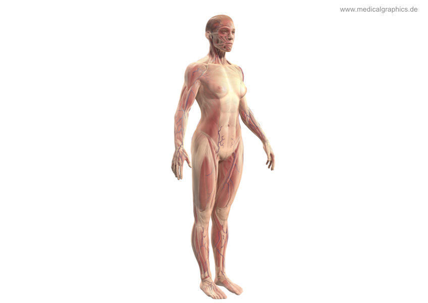Illustration Muskeln Frau (halbprofil - weiss) / Muscles woman (white - half profile)